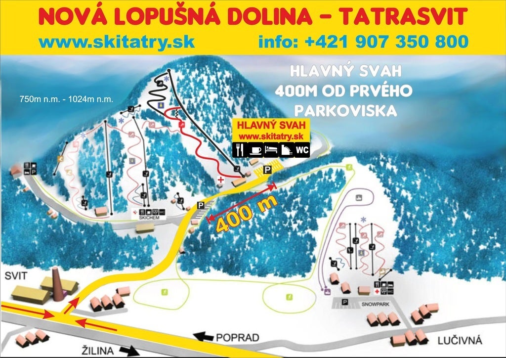Consulta las pistas y remontes de Svit - Lopušná dolina - Skitatry con nuestro mapa interactivo de la estación. Planifica tu jornada antes de ir o navega por la montaña mientras estás allí con los mapas de pistas más recientes de Svit - Lopušná dolina - Skitatry.