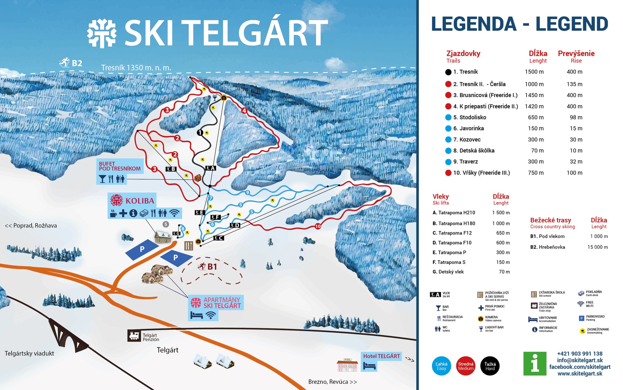 Telgárt Plano de pistasConsulta las pistas y remontes de Telgárt con nuestro mapa interactivo de la estación. Planifica tu jornada antes de ir o navega por la montaña mientras estás allí con los mapas de pistas más recientes de Telgárt.Haz clic para ampliar el mapa de pistas