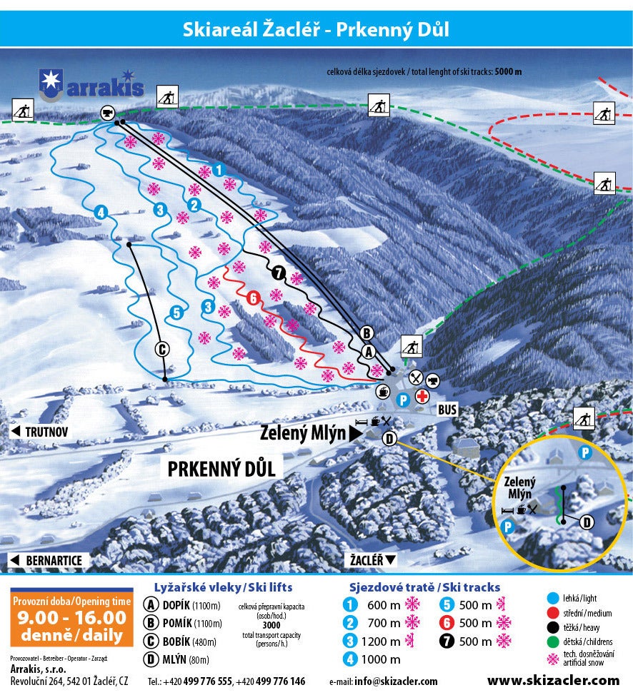 Žacléř - Prkenný Důl Plano de pistasConsulta las pistas y remontes de Žacléř - Prkenný Důl con nuestro mapa interactivo de la estación. Planifica tu jornada antes de ir o navega por la montaña mientras estás allí con los mapas de pistas más recientes de Žacléř - Prkenný Důl.Haz clic para ampliar el mapa de pistas