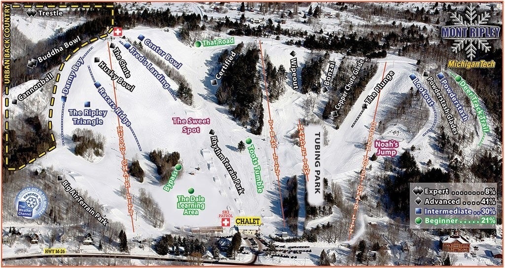 Mont Ripley Plano de pistasConsulta las pistas y remontes de Mont Ripley con nuestro mapa interactivo de la estación. Planifica tu jornada antes de ir o navega por la montaña mientras estás allí con los mapas de pistas más recientes de Mont Ripley.Haz clic para ampliar el mapa de pistas