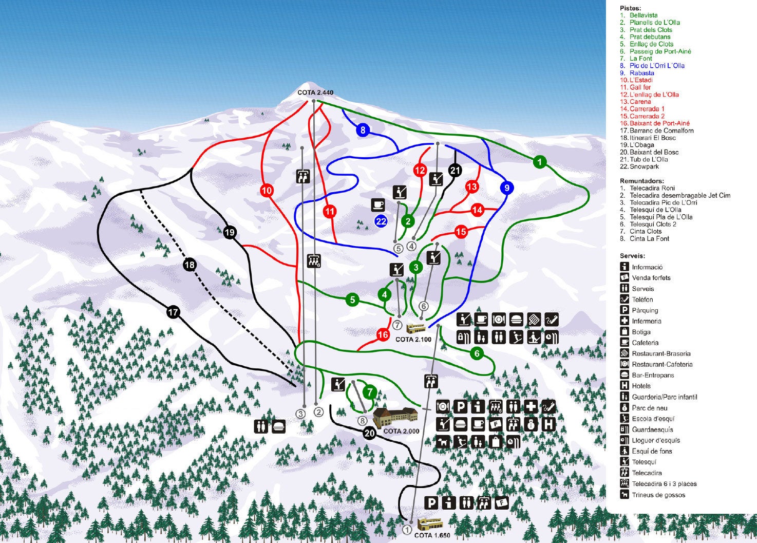 Port Ainé Plano de pistasConsulta las pistas y remontes de Port Ainé con nuestro mapa interactivo de la estación. Planifica tu jornada antes de ir o navega por la montaña mientras estás allí con los mapas de pistas más recientes de Port Ainé.Haz clic para ampliar el mapa de pistas