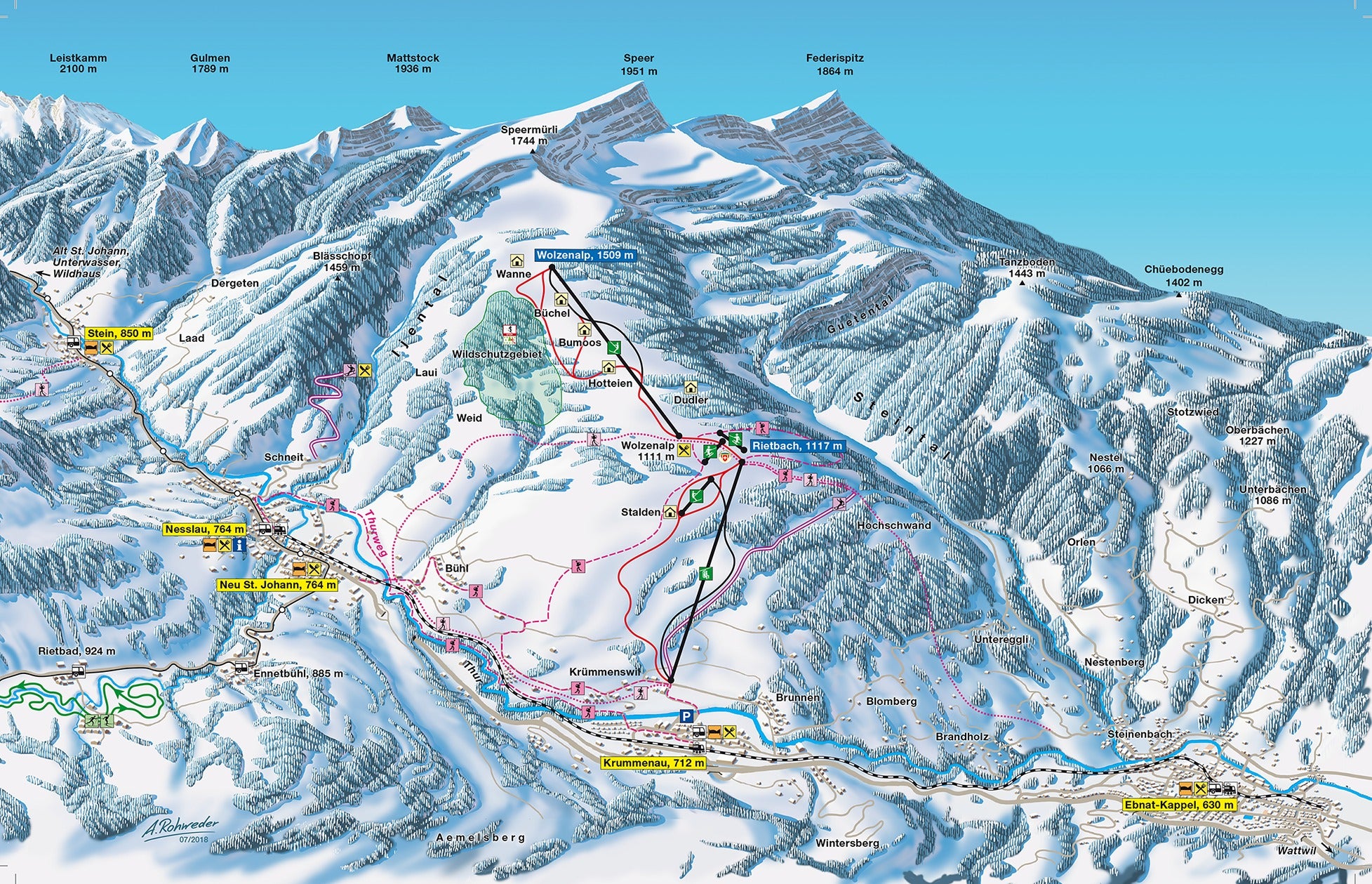 Krummenau - Wolzenalp Plano de pistasConsulta las pistas y remontes de Krummenau - Wolzenalp con nuestro mapa interactivo de la estación. Planifica tu jornada antes de ir o navega por la montaña mientras estás allí con los mapas de pistas más recientes de Krummenau - Wolzenalp.Haz clic para ampliar el mapa de pistas