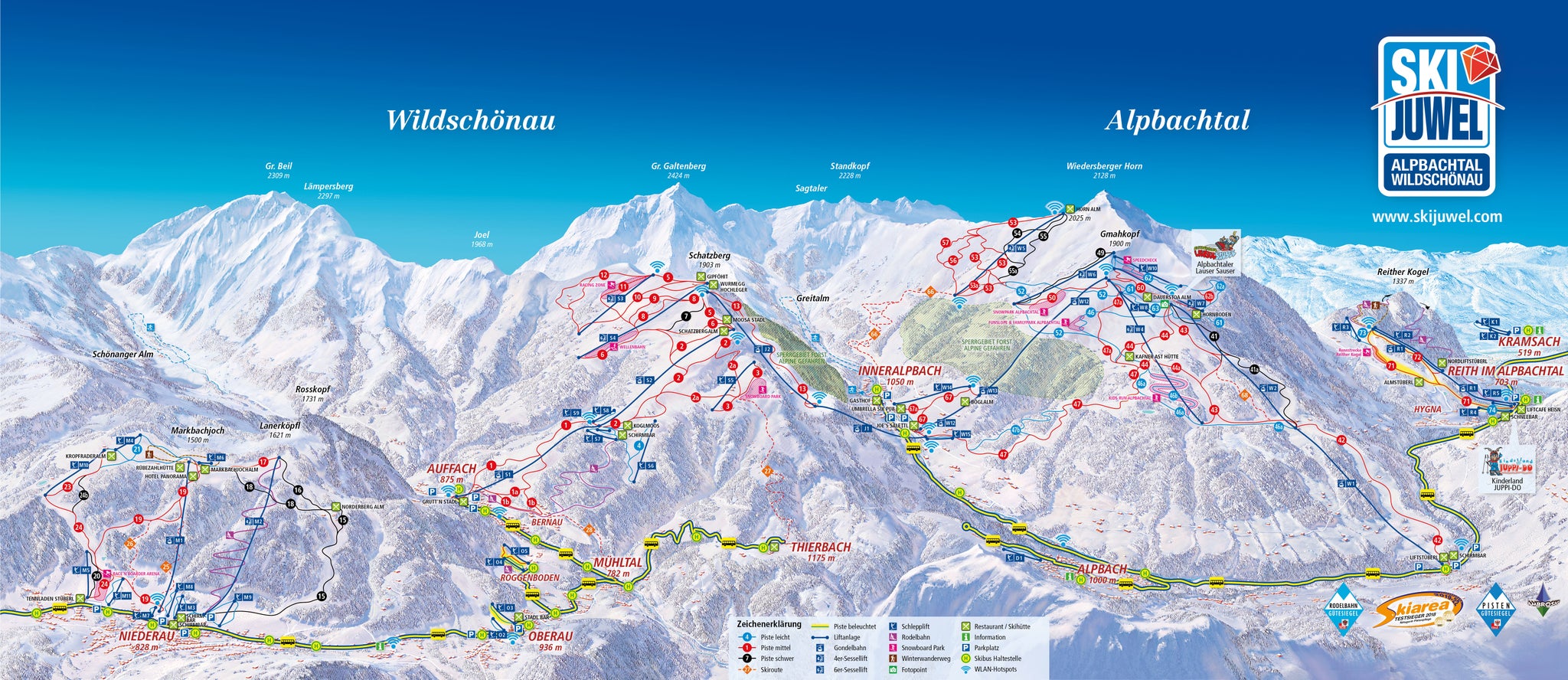 Consulta las pistas y remontes de Alpbach - Ski Juwel Alpbachtal Wildschönau con nuestro mapa interactivo de la estación. Planifica tu jornada antes de ir o navega por la montaña mientras estás allí con los mapas de pistas más recientes de Alpbach - Ski Juwel Alpbachtal Wildschönau.
