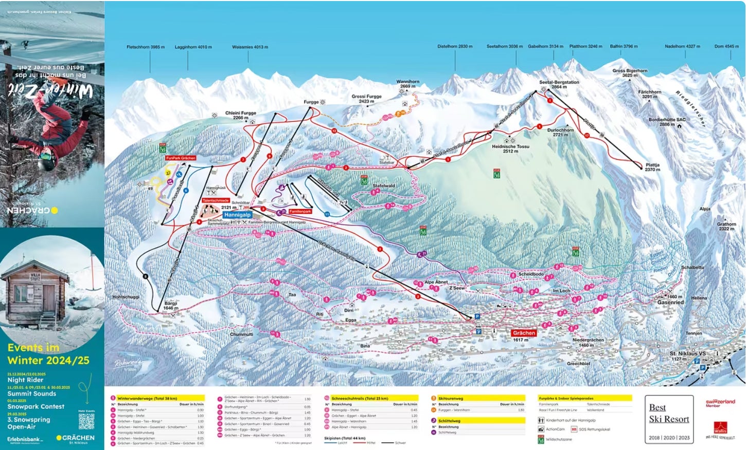 Grächen Plano de pistasConsulta las pistas y remontes de Grächen con nuestro mapa interactivo de la estación. Planifica tu jornada antes de ir o navega por la montaña mientras estás allí con los mapas de pistas más recientes de Grächen.Haz clic para ampliar el mapa de pistas