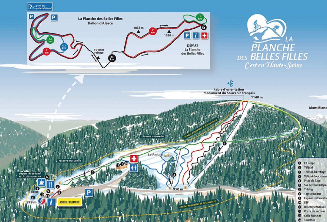 Consulta las pistas y remontes de La Planche des Belles Filles con nuestro mapa interactivo de la estación. Planifica tu jornada antes de ir o navega por la montaña mientras estás allí con los mapas de pistas más recientes de La Planche des Belles Filles.